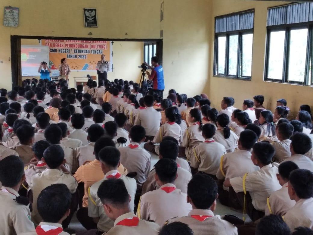 TRIBUNPONTIANAK.CO.ID, SINTANG - Berbagai kasus kekerasan yang melibatkan pelajar kerap viral beredar di media sosial (medsos). Termasuk video selama ini trending di beberapa akun media sosial sehingga Polsek Ketungau Tengah melalui kanit Sabhara Aiptu D. Wahono turun untuk melakukan sosialisasi di SMKN 1 Ketungau Tengah, Sabtu 3 Desember 2022.