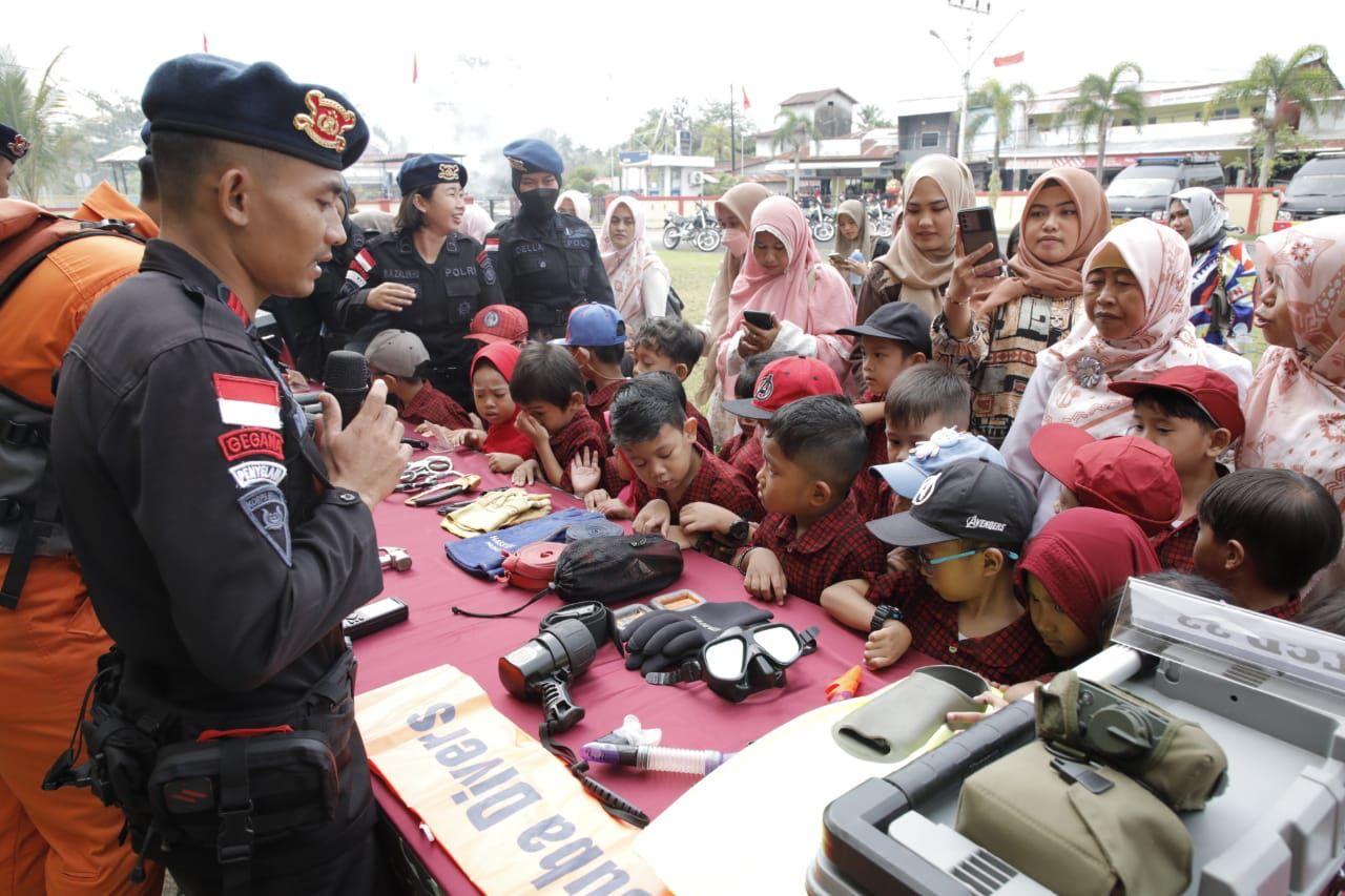 Murid-murid mendapat kesempatan untuk melihat secara langsung almatsus dan juga kendaraan dinas yang setiap harinya digunakan oleh Satbrimob Polda Kalbar dalam melaksanakan tugas sehari-hari.