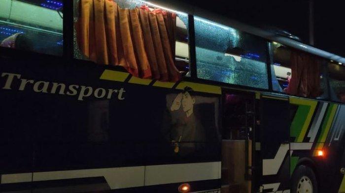 Bus yang membawa rombongan Singo Edan diserang sekelompok orang tak dikenal, mengalami kerusakan parah hingga ada penumpang yang luka-luka.