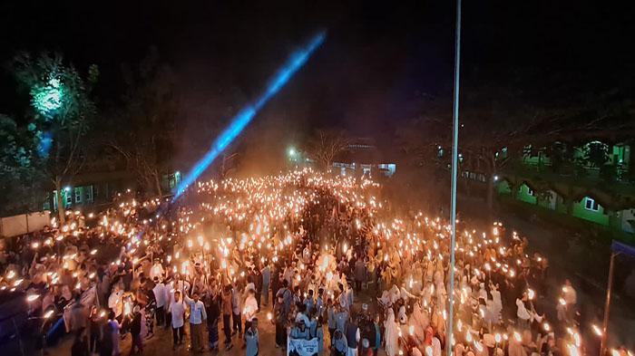 Mengangkat tema "Gerakan 1000 Obor , Tingkatkan Toleransi dan Eratkan Persaudaraan," kegiatan itu juga turun dihadiri Forkopimda Kabupaten Landak, Forkopimcam Ngabang, Kemenag Landak, Kades dalam Kota Ngabang, Ketua PHBI LDK, Ketua MUI Landak dan peserta pawai obor.