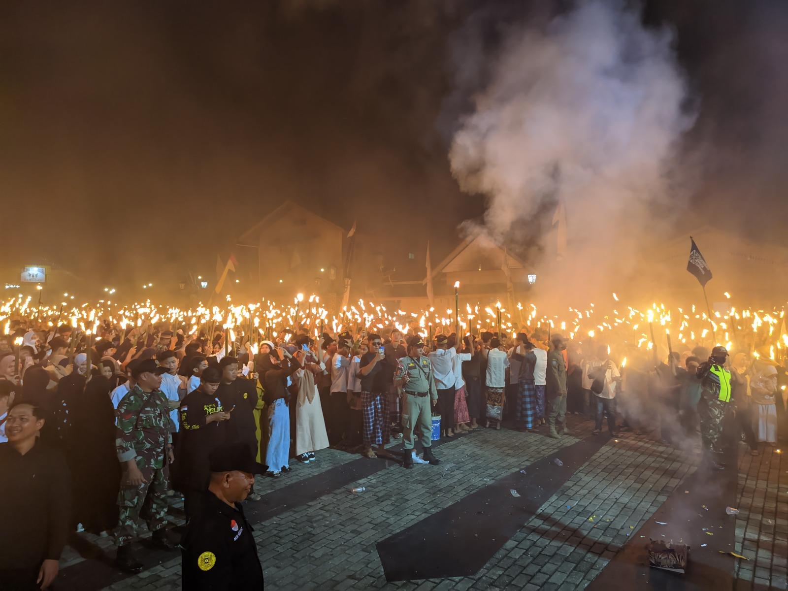"Tentu berpesan kepada umat muslim yang pada malam ini ikut memeriahkan festival seribu obor dengan tertib untuk menunjukan identitas bahwa umat muslim ini sebagai Rahmatan Lil ’Alamin yaitu Islam sebagai rahmat bagi seluruh alam semesta,” ujarnya.