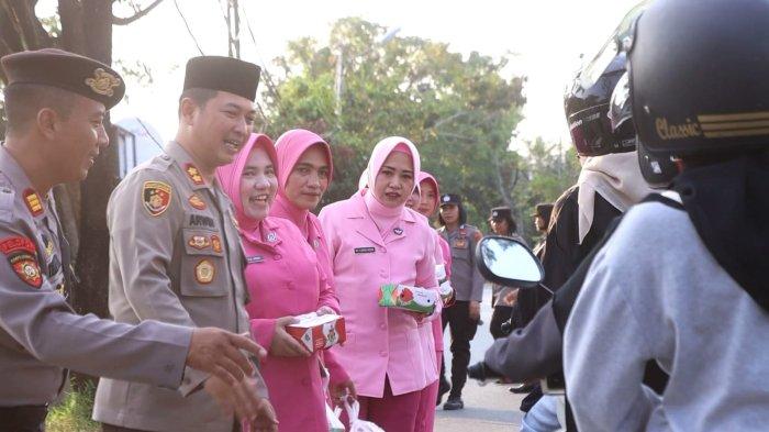 TRIBUNPONTIANAK.CO.ID, SINGKAWANG - Polres Singkawang Bersama Pengurus Bhayangkari Cabang Singkawang menggelar kegiatan Bhakti Sosial dengan membagikan ratusan takjil kepada masyarakat, kegiatan berlangsung di tiga tempat di Jl. Firdaus H.R.II ( Depan Mako Polres Singkawang), Kemudian di Jl. Diponegoro, dan di Persimpangan Jl. Pemuda Kota Singkawang, Jumat 14 April 2023.