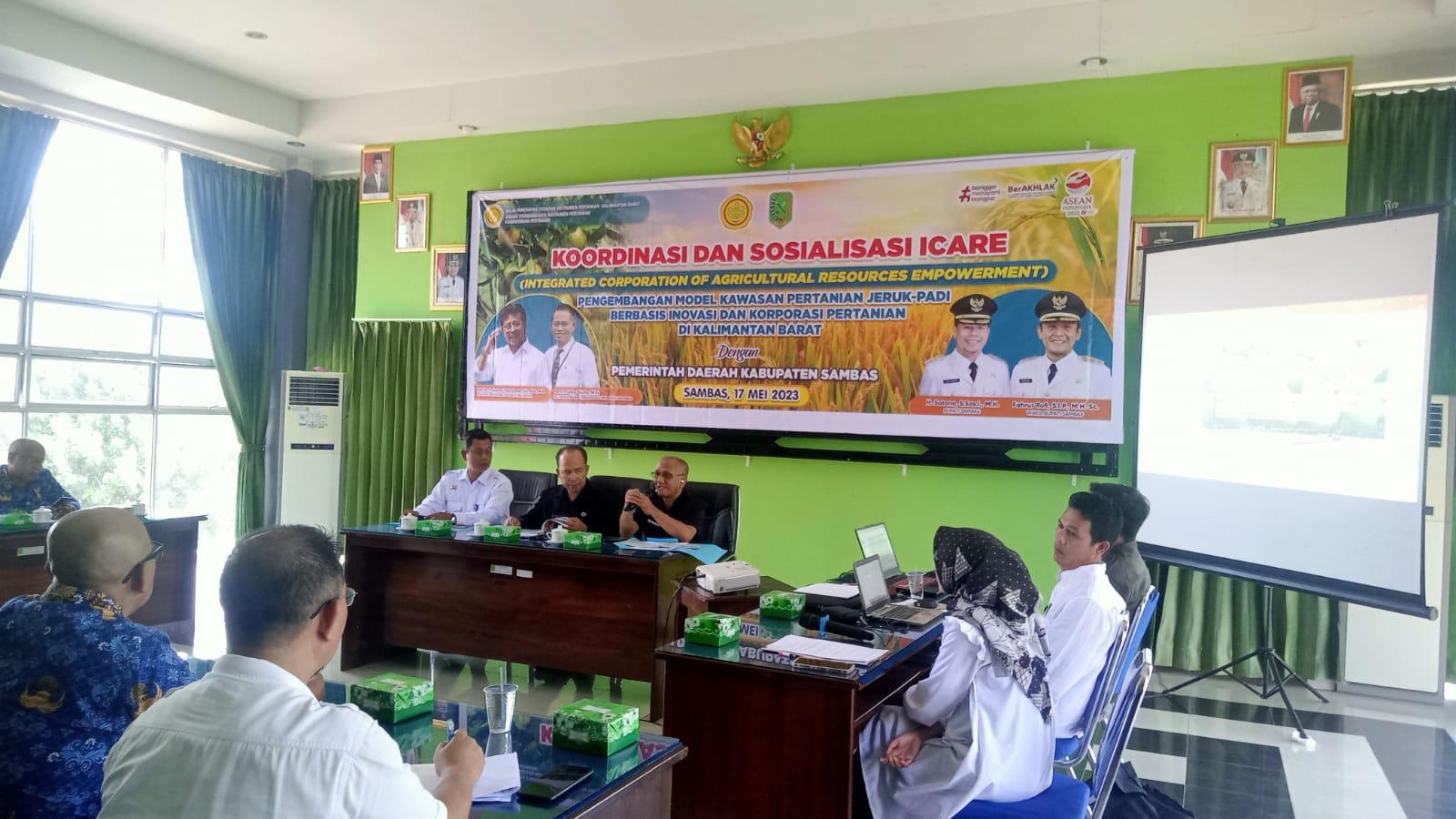 "Mengikuti rapat koordinasi dan sosialisasi program ICARE kita berterima kasih kepada pemerintah pusat telah memilih Kabupaten Sambas untuk program ICARE ini. Dimana Sambas memiliki banyak komoditas padi dan jeruk," katanya.