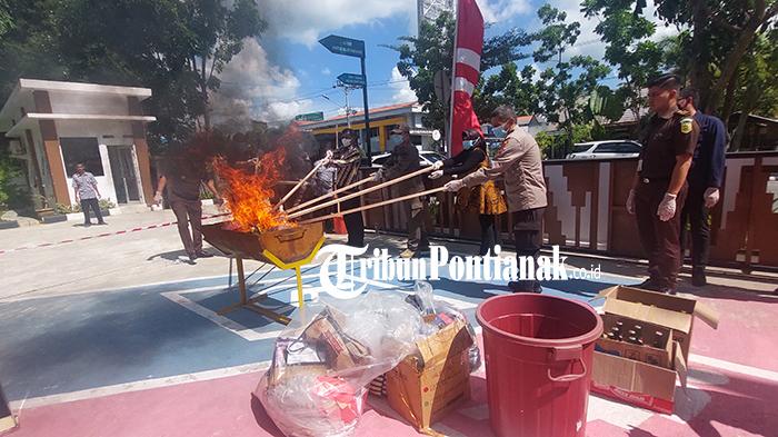Bertempat di halaman Kejaksaan Negeri Pontianak, berbagai barang bukti dimusnahkan dengan sejumlah cara.
