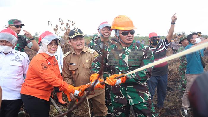 "Kepada seluruh stakeholder harus saling memotivasi untuk terus tidak boleh berhenti, tidak boleh menyerah untuk berjuang bersama, terutama di lapangan dengan segala sarana dan prasarana yang ada. Namun harus tetap memperhatikan keselamatan apalagi ini lahan gambut yang kedalaman gambutnya bisa mencapai 15 meter, jadi bahaya sekali," ujar Pangdam.