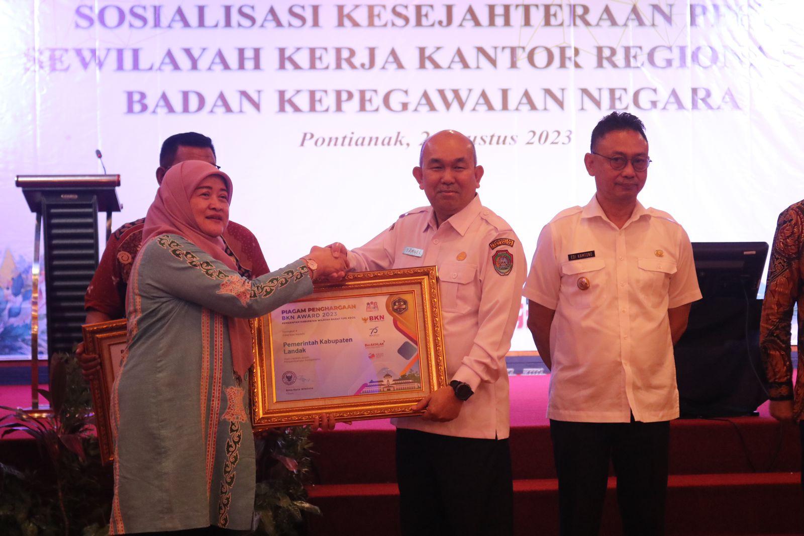 Penghargaan itu diserahkan oleh Sekretaris Utama BKN Republik Indonesia, Imas Sukmariah kepada Pj Bupati Landak Samuel, pada kegiatan Sosialisasi Kesejahteraan PPPK se-Wilayah Kerja Kantor Regional V BKN di Hotel Aston Pontianak.