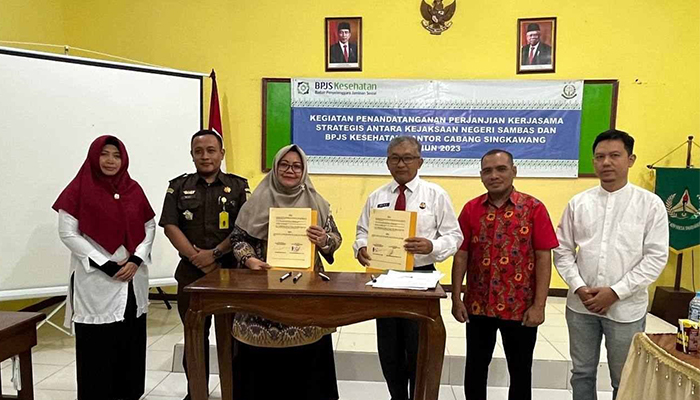 "Sejalan dengan kewenangan, kami siap untuk berkomitmen kepada BPJS Kesehatan Cabang Singkawang. Kami akan berupaya berupaya lakukan pengawalan dan penanganan badan usaha yang potensial tidak patuh. Penandatangan perjanjian kerja sama ini juga sebagai wujud dukungan Kejaksaan Negeri Sambas untuk keberhasilan Program JKN wilayah Sambas," jelas Agita.