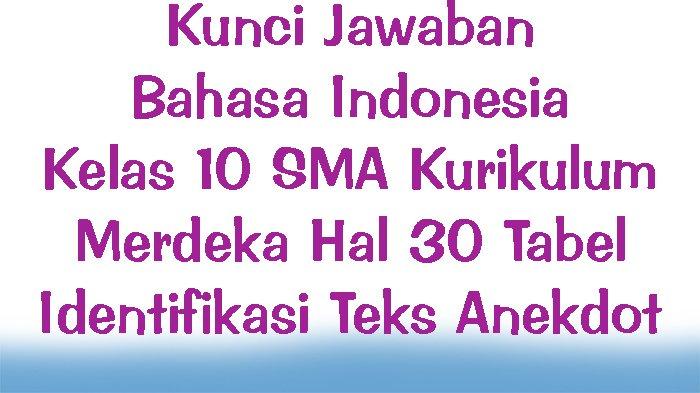 Kunci Jawaban Bahasa Indonesia Kelas 10 SMA Kurikulum Merdeka Hal 30 Tabel Identifikasi Teks Anekdot