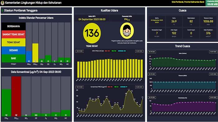 "ISPU atau kualitas udara rata-rata selama 24 jam di Kota Pontianak kembali menunjukkan level Tidak Sehat. Kualitas udara extrem terjadi pukul 02.00-04.00 dengan status Sangat Tidak Sehat" ujarnya kepada tribunpontianak.co.id, Senin 4 September 2023.