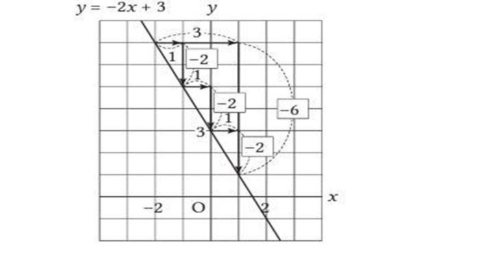 Gambar di samping kanan merupakan upaya penyelidikan hubungan antara posisi dua titik pada grafik fungsi linear y = –2x + 3.