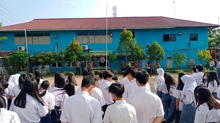TRIBUNPONTIANAK.CO.ID, MEMPAWAH - Kapolsek Sungai Pinyuh AKP Rismanto Ginting bersama Danramil Sungai Pinyuh Kapten Inf Bambang R, melaksanakan pembinaan dan penyuluhan di SMK Panca Karsa Sungai Pinyuh dalam rangka menghindari kasus bullying terhadap sesama pelajar, Senin 10 Oktober 2023.