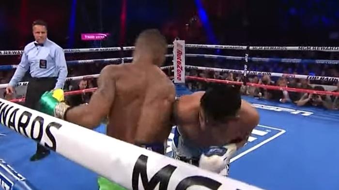 Seperti pada ronde keempat, uppercut dari Vaquero membuat petinju asal Brasil itu jatuh.
