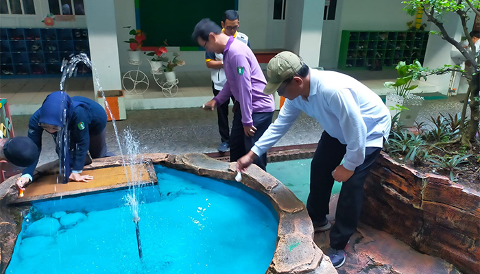 Selain di wilayah permukiman warga, lingkungan sekolah-sekolah juga menjadi target pemberantasan nyamuk Aedes aegypti, SDN 56 Pontianak Barat di Jalan Kom Yos Sudarso salah satunya.