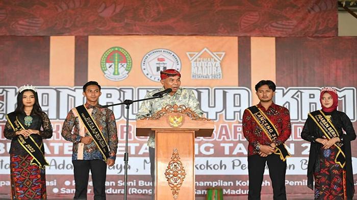 TRIBUNPONTIANAK.CO.ID, KETAPANG - Bupati Ketapang Martin Rantan, SH.,M.Sos membuka pekan budaya Ikatan Keluarga Besar Madura (IKBM) Kabupaten Ketapang Tahun 2023 di Balai Sungai Kedang, Pendopo Bupati Ketapang, Sabtu 2 Desember 2023.