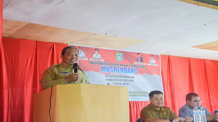 TRIBUNPONTIANAK.CO.ID, SINTANG - Wakil Bupati Sintang, Melkianus menghadiri Musyawarah Rencana Pembangunan (Musrenbang) tingkat Kecamatan Ambalau di Desa Nanga Kemangai, Senin kemarin.