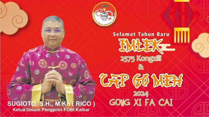 Dalam kesempatan tersebut, Ketua Umum Pengurus Provinsi Federasi Olahraga Barongsai Indonesia (Pengprov FOBI) Kalimantan Barat Sugioto, SH, M.Kn turut mengucapkan Selamat Tahun Baru Imlek 2575 Kongzili dan Cap Go Meh 2024.
