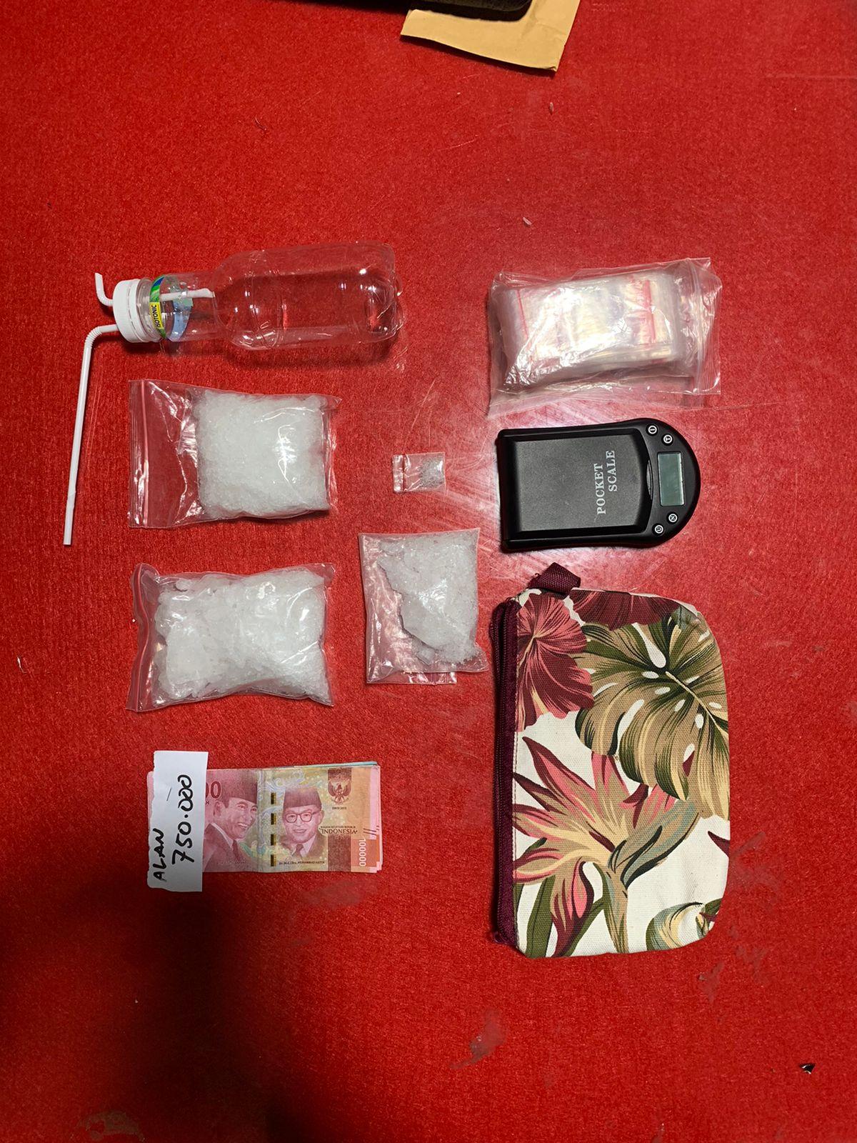 Dari tangan pelaku WI, Petugas mengamankan 2 kantong plastik masing masing berisi serbuk kristal putih yang diduga sabu dengan berat total 101,02 Gram Bruto.