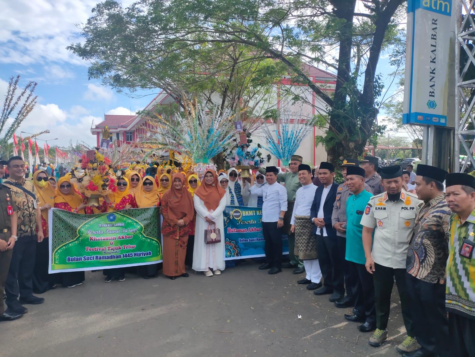 terimakasih kepada Bupati Sambas yang telah memberikan dukungan yang sangat luar biasa atas terselenggaranya acara ini, dan juga terimakasih kepada Tim Penggerak PKK karena PKK lah yang berinisiatif mengadakan acara selain pawai ta'aruf ini, yang mana peserta hadir pada hari ini kurang lebih sekitar 3000 orang, yang diikuti seluruh kecamatan dan desa di Kab.Sambas, patut kita syukuri dengan adanya acara ini dapat menghidupkan suasana Islami di Kabupaten Sambas.