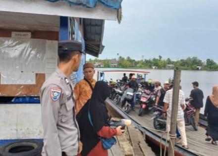 Spkt Polsek Sejangkung melakukan patroli dialogis ke lokasi ramai aktivitas masyarakat salah satunya di penyebrangan steher Sejangkung, Desa Parit Raja.