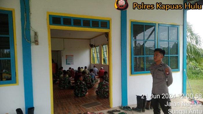 TRIBUNPONTIANAK.CO.ID, KAPUAS HULU - Personel Polisi lakukan pengamanan ibadah Sholat Jumat di Masjid Al-Mujahidin, Desa Sungai Antu, Kecamatan Puring Kencana, Kabupaten Kapuas Hulu.