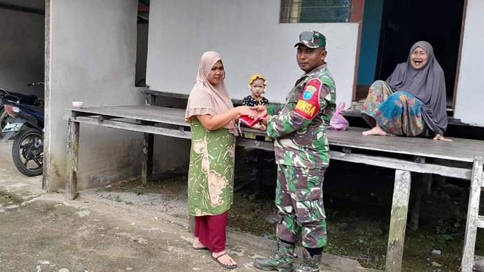 Ajak Masyarakat Kibarkan Bendera, TNI Bagikan Bendera di Kapuas Hulu