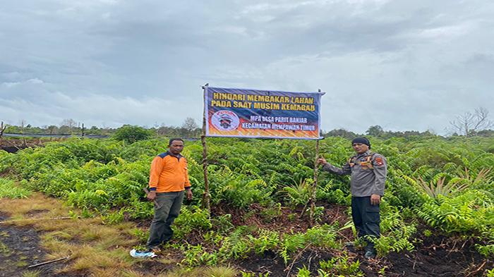 Masyarakat Peduli Api Parit Banjar Bersama Bhabinkamtibmas Kompak Pasang Banner Larangan Bakar Lahan