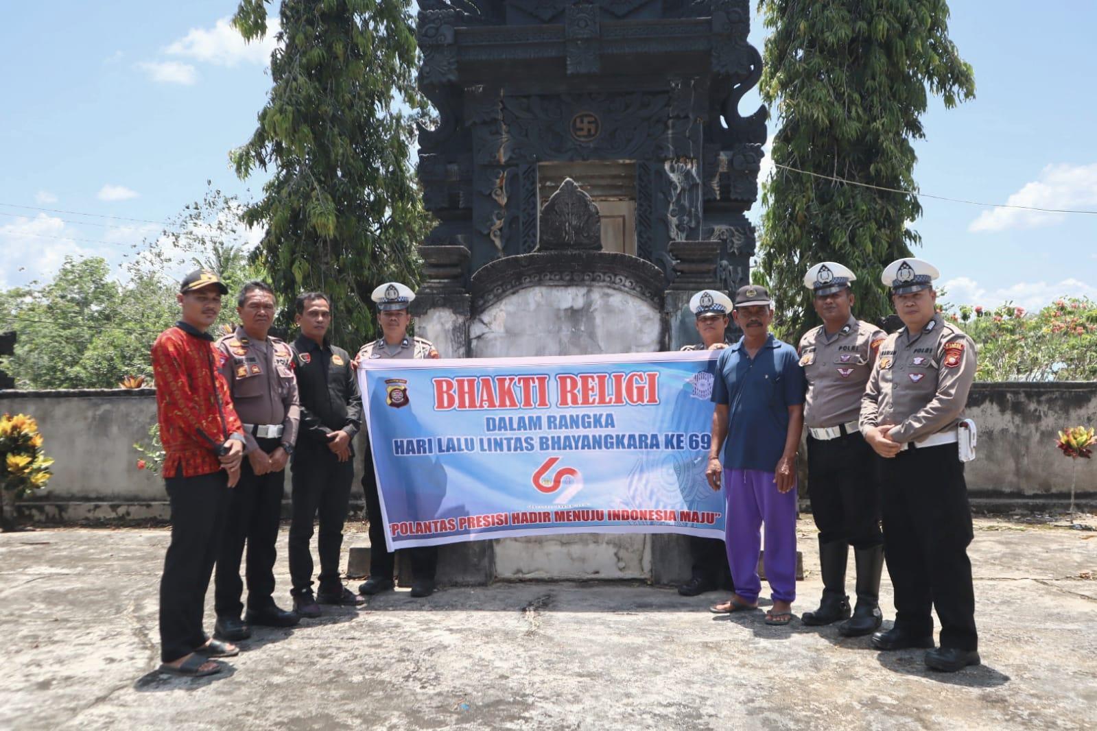 Satlantas Datangi Pura Umat Hindu di Tempunak Lakukan Bakti Religi
