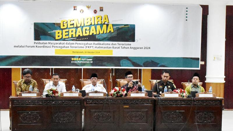 TRIBUNPONTIANAK.CO.ID, MEMPAWAH - Badan Nasional Penanggulangan Terorisme (BNPT) melalui Forum Koordinasi Pencegahan Terorisme (FKPT) Kalimantan Barat menggelar Gembira Beragama atau Gerakan Muda Bangga Bernegara dan Beragama di Aula Balairung Setia Kantor Bupati Mempawah, Rabu 30 Oktober 2024.