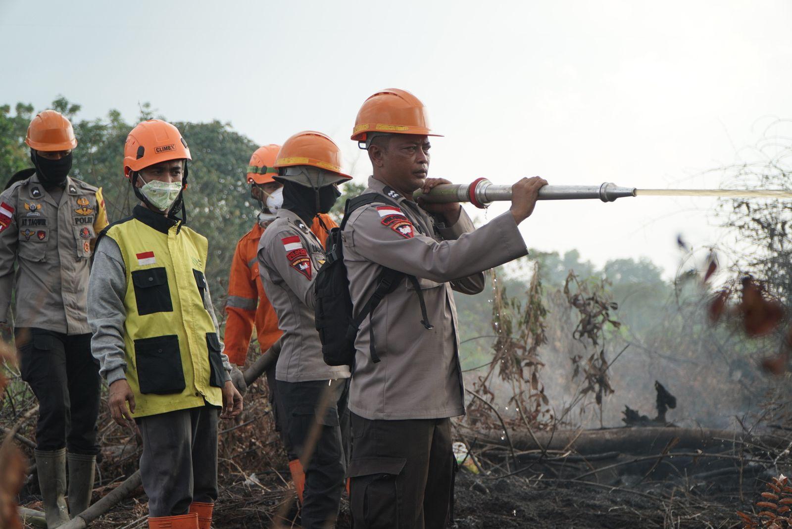Satbrimob Polda Kalbar Lakukan Pemadaman Api Karhutla di Kubu Raya