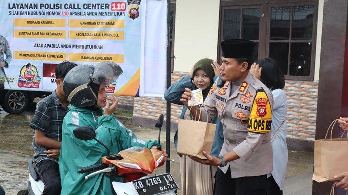 Peduli Sesama di Bulan Ramadan, Polres Landak dan Mahasiswa Bagikan Takjil pada Pengendara