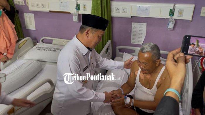 Gubernur Kalimantan Barat, Ria Norsan saat membesuk korban di RSUD Abdul Aziz Kota Singkawang pada, Rabu 23 April 2025, siang. Meminta kepada pihak terkait untuk dapat mengusut dan mengungkap kasus tersebut.