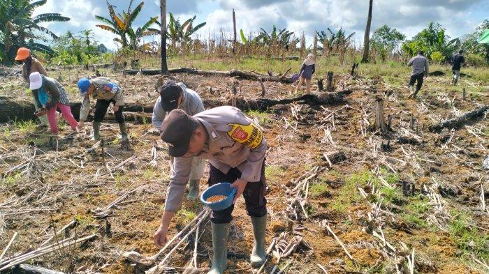 TRIBUNPONTIANAK.CO.ID, KETAPANG - Dalam upaya mendukung program ketahanan pangan nasional, Polsek Sandai Polres Ketapang melaksanakan kegiatan penanaman jagung perdana bersama Kelompok Tani Karya Bakti di Dusun Sumber Rejo, Kecamatan Sandai, Kabupaten Ketapang, Jumat 2 Mei 2025.