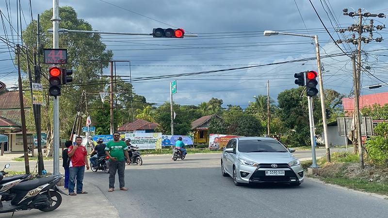 Dishub Uji Coba Traffic Light Simpang Tiga Jalan Pembangunan Dalam Kaum Sambas