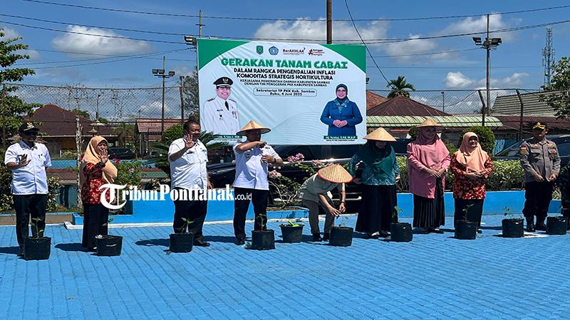Simbolis pencanangan gerakan tanam cabai dilakukan Bupati Satono didampingi Ketua TP PKK Yunisa, Wakil Bupati Heroaldi, Ketua GOW Sambas, Sekda Sambas, dan jajaran Forkopimda.