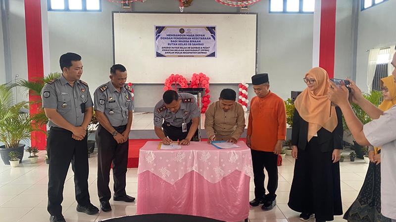 Penandatanganan PKS dilakukan oleh Kepala Rutan Sambas, Andriyas Dwi Pujoyanto, dan Kepala Sekolah PKBM Akhlak Mulia Kecamatan Sambas.