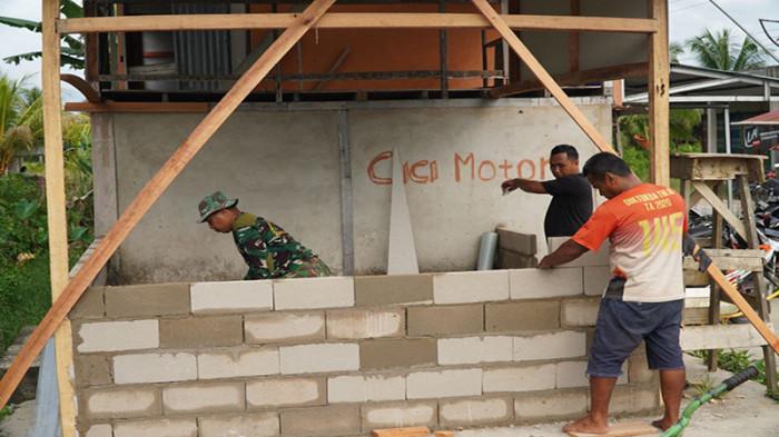 Kali ini, anggota Satgas TMMD Kodim 1208 Sambas bersama warga Desa Ratu Sepudak bergotong-royong merehabilitasi pos kamling yang berada di sudut Desa Ratu Sepudak.