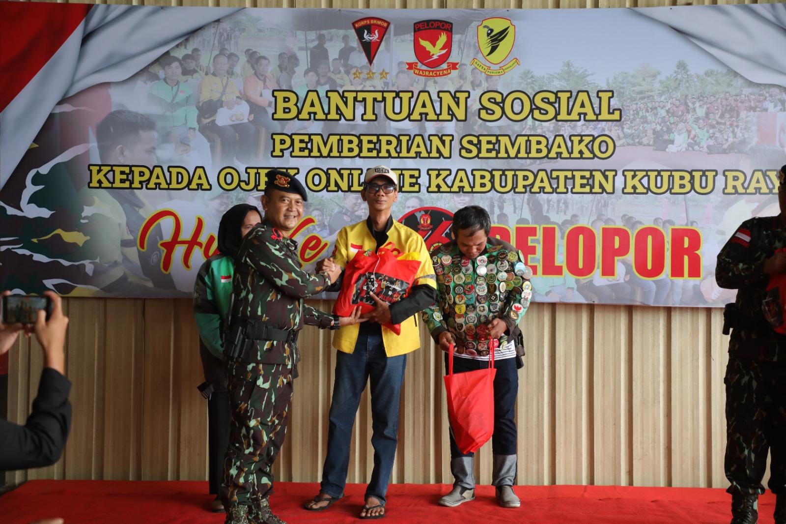 Wadansatbrimob Polda Kalbar, AKBP Mada Ramadita, S.I.K. secara langsung menyerahkan bantuan sembako kepada perwakilan Ojek Online.