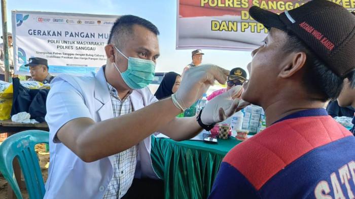 Kegiatan tersebut berlangsung di area tenda lokasi Gertam Jagung yang dipimpin oleh PS. Kasi Dokes Polres Sanggau, Aiptu Surip Sunaryo, bekerja sama dengan tenaga medis dari Puskesmas Kembayan serta pihak PTPN IV Regional V Kembayan.