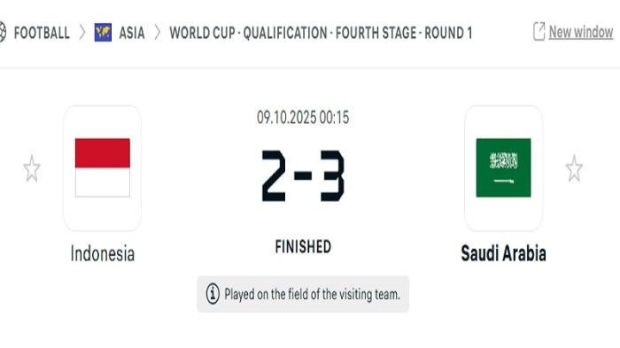 • HASIL Akhir Indonesia vs Arab Saudi Ronde 4 Kualifikasi Piala Dunia 2026, Asa Garuda Lolos Pupus!