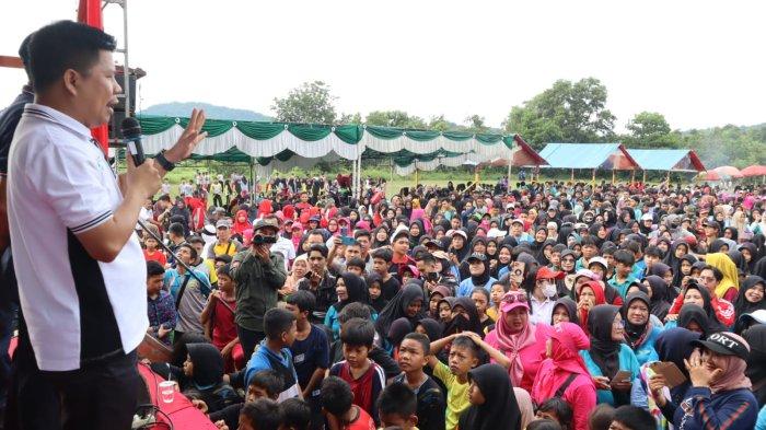 Semangat kaum ibu-ibu serta ratusan pelajar mengikuti senam awalnya biasa saja, namun mereka semakin menggeliat ketika pembagian doorprize dimulai.