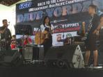 Ghaitsa Kenang mulai melakukan chek sound di panggung hiburan dalam pertandingan tinju