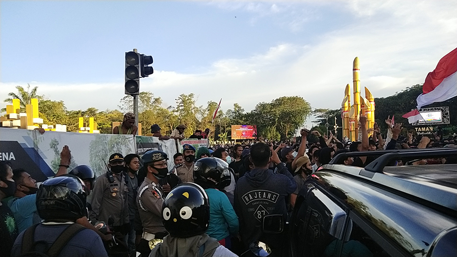 Mahasiswa menuntut aksi nyata dari anggota DPRD Kalbar maupun Gubernur Kalbar Sutarmidji dalam menolak disahkannya Undang-undang Omnibus Law.