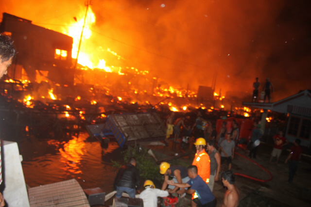 Tak hanya menghanguskan pasar ikan yang memiliki puluhan lapak, api juga membakar hangus sedikitnya belasan ruko didekatnya.