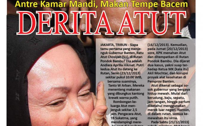 Gubernur Banten, Ratu Atut Chosiyah, akhirnya ditetapkan menjadi tersangka oleh KPK, dalam dua kasus: suap dan korupsi.